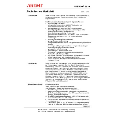 Akemi AKEPOX 2030 (Kleber in Kartuschen) grau-grün 50 ml | Selbstbedienungsverbot