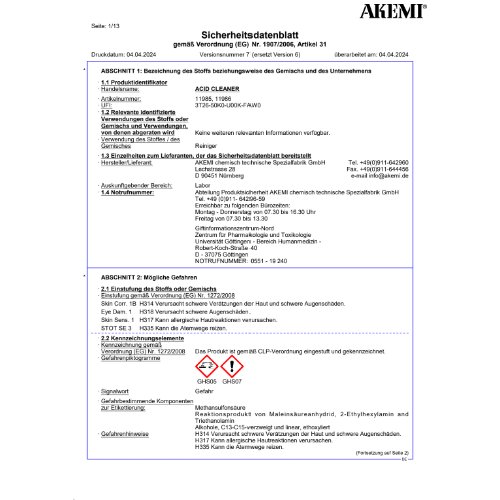 Ansprechpartner: Abteilung Produktsicherheit AKEMI chemisch technische Spezialfabrik GmbH