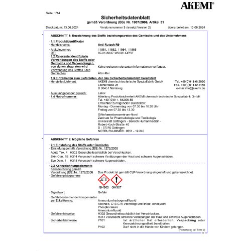 Ansprechpartner: Abteilung Produktsicherheit AKEMI chemisch technische Spezialfabrik GmbH