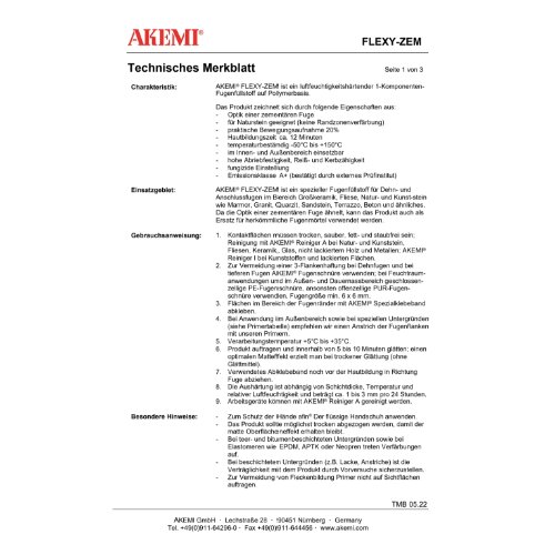 FLEXY-ZEM ist ein spezieller Fugenfüllstoff für Dehn- und Anschlussfugen im Bereich Großkeramik, Fliese, Natur- und Kunststein wie Marmor, Granit, Quarzit, Sandstein, Terrazzo und Beton. Da die Optik einer zementären Fuge ähnelt, kann das Produkt auch als Ersatz für herkömmliche Fugenmörtel verwendet werden.