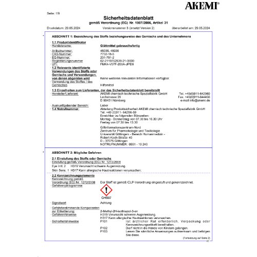 Ansprechpartner: Abteilung Produktsicherheit AKEMI chemisch technische Spezialfabrik GmbH