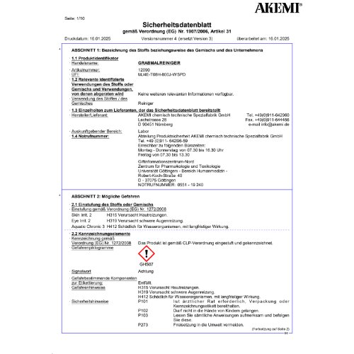 Ansprechpartner: Abteilung Produktsicherheit AKEMI chemisch technische Spezialfabrik GmbH