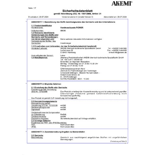 Ansprechpartner: Abteilung Produktsicherheit AKEMI chemisch technische Spezialfabrik GmbH