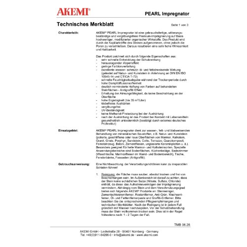 Premium-Imprägnierung mit exzellentem wasser-, öl- und fettabweisendem Effekt. Schützt Natur- und Kunststein, z.B. Marmor, Kalkstein, Granit, Gneis, Porphyr, Sandstein, Cotto, Terrazzo,