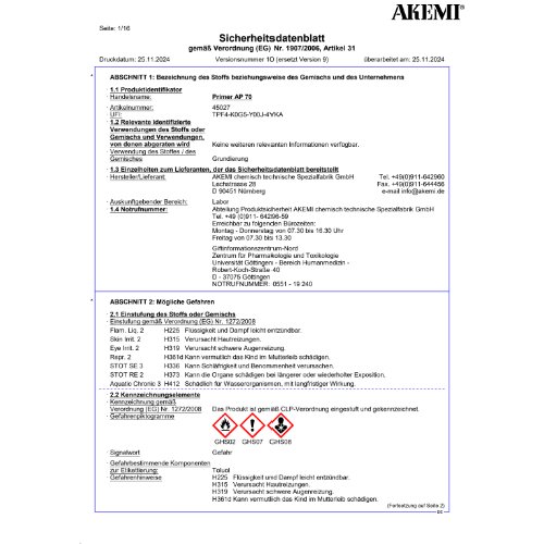 Ansprechpartner: Abteilung Produktsicherheit AKEMI chemisch technische Spezialfabrik GmbH