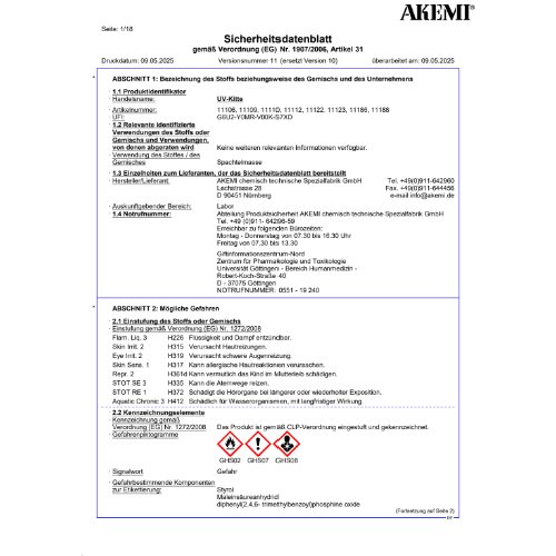 Ansprechpartner: Abteilung Produktsicherheit AKEMI chemisch technische Spezialfabrik GmbH