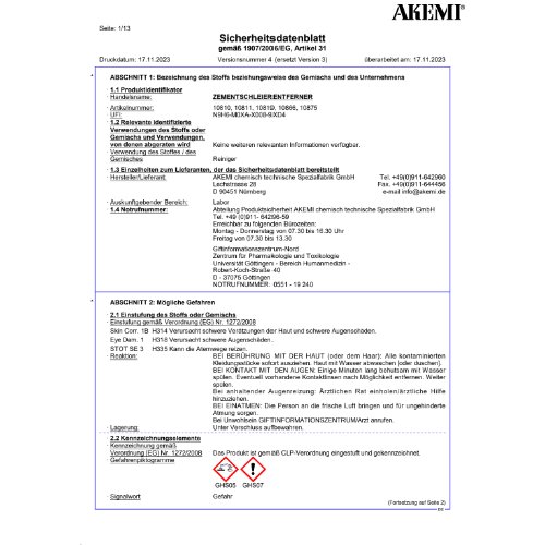 Ansprechpartner: Abteilung Produktsicherheit AKEMI chemisch technische Spezialfabrik GmbH