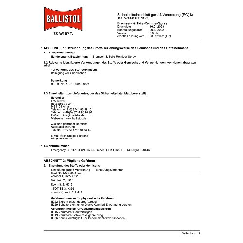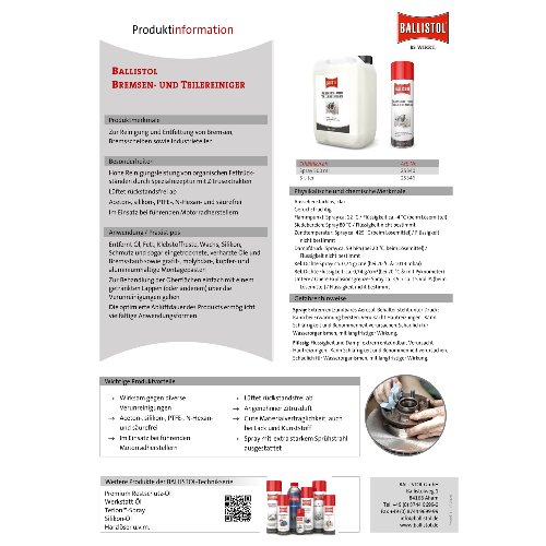 Bremsen- u.Teilereiniger acetonfrei 500ml Spraydose BALLISTOL