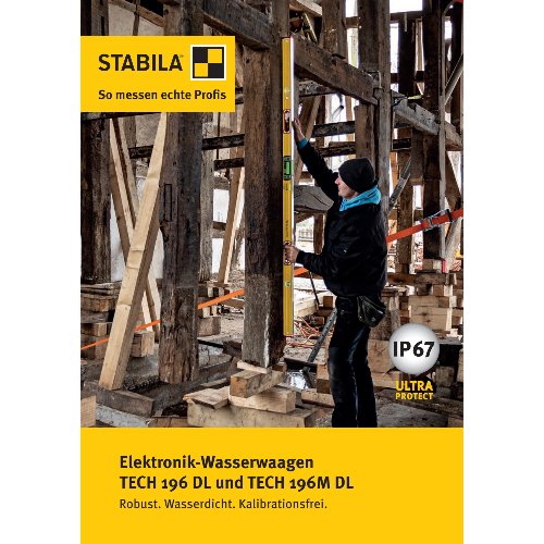 Wasser, Schmutz und Erschütterungen – Werkzeuge müssen einiges wegstecken. Mit der elektronischen Wasserwaage TECH 196 DL sind Sie für den harten Baustellenalltag bestens gerüstet. Dank ULTRA-PROTECT ist die Reinigung unter Wasser kein Problem und das hochpräzise Elektronikmodul muss auch nach Stürzen oder Temperaturschwankungen nicht kalibriert werden. Clevere Features dieses Qualitätsproduktes Made in Germany vereinfachen jede Messaufgabe: zwei Digital-Anzeigen mit Beleuchtung, akustische Zielführung sowie zahlreiche Anzeige-Modi. Modernste Technik für effizientes Arbeiten.