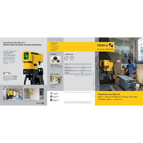 Leistungsstark und flexibel – so präsentiert sich der Kreuzlinien-Laser LAX 50 G. Wenn Sie zu den Profis gehören, die auf ein außergewöhnlich gut sichtbares Laserkreuz Wert legen, dann wird Sie die innovative STABILA GREENBEAM-Technologie überzeugen. Die praktische Mehrzweckplattform ist eine perfekte Ergänzung des einfach zu bedienenden Lasers. Dank der flexiblen Befestigungsmöglichkeiten können Sie den Laser auf eine gewünschte Arbeitshöhe positionieren. Profitieren Sie von diesem Allroundtalent für den Innenausbau.