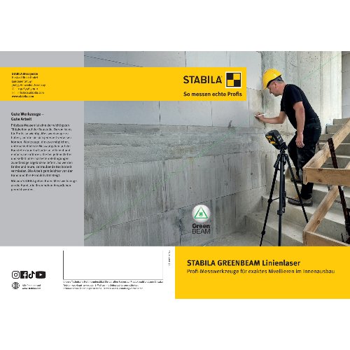 Entdecken Sie den STABILA LAX 320 G, den kompakten Kreuzlinien-Laser mit Lotpunkten. Mit der innovativen GREENBEAM-Technologie bietet dieser Profi-Laser gestochen scharfe lange Linien für präzises Arbeiten in bis zu 30 m Entfernung. Der manuelle Modus erlaubt flexible Neigungen, während das clevere Set-Zubehör vielseitige Anwendungen ermöglicht. Das eindrehbare Gehäuse schützt die Laseroptik optimal in der Parkposition. Ideal für den Innenausbau und alle, die täglich auf präzise Laserlinien angewiesen sind. STABILA – effizient arbeiten, perfekte Ergebnisse!