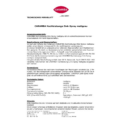 langanhaltender galvanischer Rostschutz · mit Füller-Eigenschaften für Werkstatt und Industrie · durchschweißbar · überlackierbar · ideal auch als Grundierung · temperaturbeständig bis +500 °C · über 1.140 h Schutzwirkung im Salzsprühnebeltest nach DIN EN ISO 9227 · schnelltrocknend · gut schleifbar Weitere technische Eigenschaften: · Farbe: mattgrau · Gebinde: Spraydose